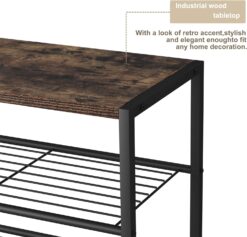 - 【Industrial Shoe Organizer with Large Tabletop】Specially designed with a look of wood accent, this small shoe rack is decorative enough to suit any corner of your house.