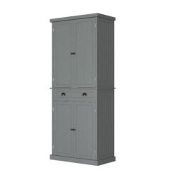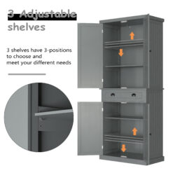 HOMEFORT 72″ Traditional Freestanding Kitchen Pantry Cabinet Cupboard with Doors and 3 Adjustable Shelves, Gray