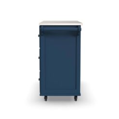 Maximize the storage space and work surface in your kitchen with this Dolly Madison Kitchen Cart by HOMESTYLES. The stainless steel surface sits atop a striking blue, durable engineered wood frame, which can be easily moved throughout your space on lockable casters to bring convenience right where it’s needed most. Loaded with space-saving features and storage options, it brings the ultimate in versatility and charm to your kitchen.