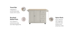 Maximize worksurface area and storage space in your kitchen with this Dolly Madison Kitchen Cart by Homestyles. The solid hardwood surface sits atop a durable engineered wood frame, which can be easily moved throughout your space on lockable casters to bring the convenience right where it’s needed most. Loaded with space-saving features and storage options, it brings the ultimate in versatility and charm to your kitchen.