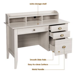 Homfa 47 in Computer Desk, Home Office Writing Table with 4 Drawers and Hutch Shelf, Sturdy Desk with Spacious Desktop, Oak White Finish