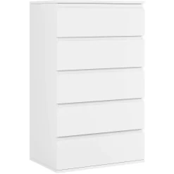 Homfa 5 Drawer White Dresser, Modern Storage Cabinet for Bedroom, White Chest of Drawers Wood Organizer for Living Room