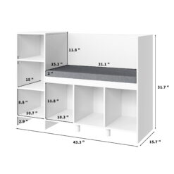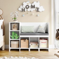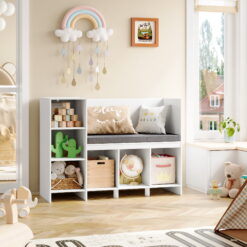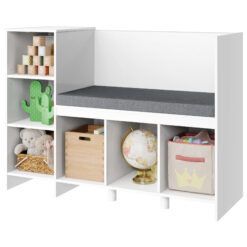 Homfa 6-Cubby Kids Bedroom Storage Organizer, Multi-Purpose Bookcase with Reading Nook, Storage Bench with Seat Cushion, White