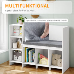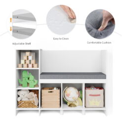 Kids, curl up with a favorite book and always have a cozy spot for story time with this multifunctional furniture piece! This children’s storage rack has 6 storage compartments, of which the first storage compartment shelf on the left can be adjusted. There is enough space for books, blankets, stuffed animals, and more. The removable upholstery is comfortable and easy to clean. Made from safe and durable materials, this combination bookshelf and cubby is the perfect reading corner that any child will love. This charming piece of furniture looks great in any room and is the perfect storage and reading bench for young readers.