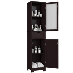 Homfa Bathroom Storage Cabinet, Brown Linen Cabinet, Narrow Tall Cabinet Storage Tower with Door and Drawer
