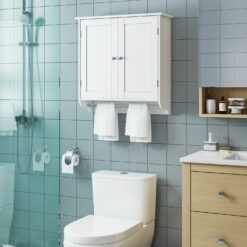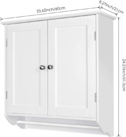 Homfa Bathroom Wall Cabinet, 23.6” W Over The Toilet Storage Cabinet with Double Door Cupboard and Adjustable Shelf and Towels Bar, White
