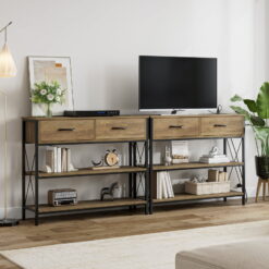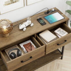 - 【Adequate Storage Space】This sofa table has 2 drawers and 2 open shelves, it can help you organize your living room essentials and keep them dust-free. You can hide your small items in the drawers to avoid clutter and use the shelves below to hold storage boxes, books or even shoes. And the spacious tabletop is the perfect place to display your favorite plants, pictures and decorations.