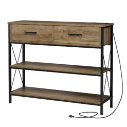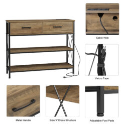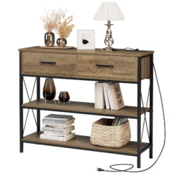Homfa Console Table with Charging Station, 3 Tier Entryway Table with Drawer, Rustic Brown