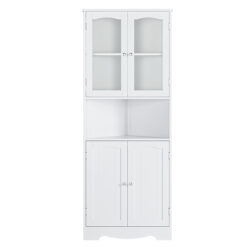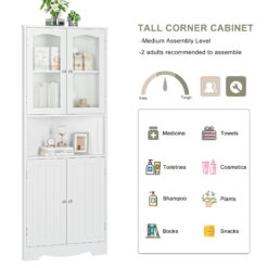 - 【Adequate Storage Space】 This 4 door white corner cabinet has 5 layers of storage space, and the frosted glass on the upper level provides hidden space to towels, shampoo, etc.