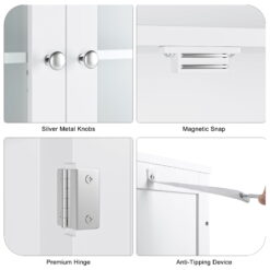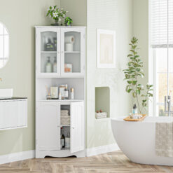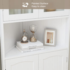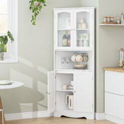 Homfa white corner cabinet is made of high quality MDF and frosted glass, easy to clean, waterproof and durable. Corner cabinet can make full use of every corner and save space. Frosted glass doors provide hidden space, thickened base keeps the storage cabinet more stable, and the elegant and stylish white look is perfect for your bathroom, laundry room, living room, kitchen and entryway.