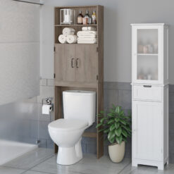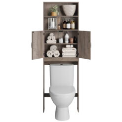 The over toilet storage has a simple design, allowing it to be dressed to fit almost any decor. Features one enclosed shelf with double doors, and two open shelves to place soap, toilet paper, and other decorative items. Keep toiletries, cleaning supplies, and more organized while adding a touch of fashional appeal to your bathroom with this essential storage shelf. Made with high-quality manufactured wood. The toilet storage shelf Comes with an anti-toppling device to prevent wobbling. A beam at the bottom supports its stability. Smooth surface for you to easily clean it up. Perfectly match any furniture in your house and make your home look more elegant. Make use of wasted space with this space-saving storage unit.