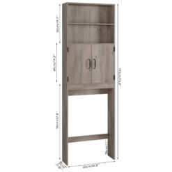 Homfa over Toilet Storage Rack, Bathroom Storage Cabinet over Toilet with 4-tier Shelves and 2 Doors, Gray Finish