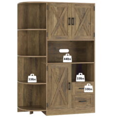 Homfa – Create a comfortable life! This spacious and versatile tall storage cabinet has 6 open compartments, 2 storage drawers, and 6 storage compartments with doors for a variety of storage and display options. It can be conveniently placed in a corner or used as a general storage cabinet in any room of the home. Our floor standing cabinet is not only modern, stylish and beautiful, but also practical and convenient. The rustic design makes it easy to complement your kitchen and office décor. It is the perfect addition to your home.