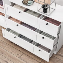 - [6-Drawer Storage Capacity]: Featuring 6 drawers, the white dresser not only provides you with multiple storage spaces in two sizes but also offers you a more convenient way to store all of your bedroom essentials or kitchenware.Black knobs are designed for easy opening of drawers.