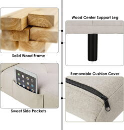 - [Sturdy and Durable] – This sleeper sofa is made of exquisite tufted linen fabric with solid wood metal legs, the total weight can reach 350 pounds, ensuring strong support and strong structure.