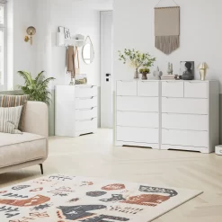 - 【Durable Construction】– Made of high quality engineered board, the box with four drawers is excellent in terms of durability. Dresser drawers feature high-quality metal rails that open and close smoothly for many years.