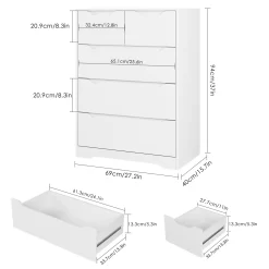 - 【Multiple Usage】- This compact dresser is stylish and practical, it can easily fit into small spaces, and accentuate any unused corners of your home. Large wooden drawers can be used to store your shirts, pants, dresses, documents and books or other everyday items. The spacious table top reflects your taste and it is suitable for all kinds of items.