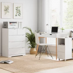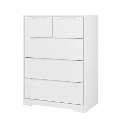 Homfa White Dresser for Bedroom, Wood Storage Chest of 5 Drawers with Cutout Handles for Living Room