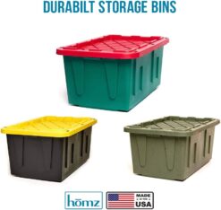 HOMZ 15 Gallon Durabilt Storage Bins, Pack of 2 Heavy Duty Plastic Containers, Secure Snap Lids, 6 Hasp Areas for Tie-Down Straps or Locks, Stackable, Nestable, Organizing Totes