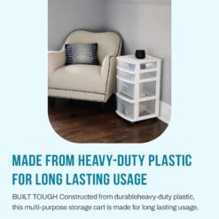 - Clear plastic design with easy-access handles makes it easy to see storage contents without having to open or remove drawers; Removeable casters or wheels are included which allows 360-degree operation
