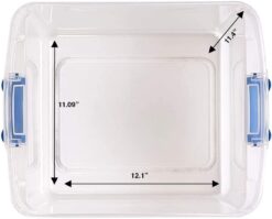 - STACKABLE: Deep recessed lid allows for secure stacking to maximize vertical storage space; Exterior Dimensions (L x W x H): 16.25 x 13 x 12.13 inches; Interior Dimensions (L x W x H): 12.1 x 11.09 x 11.44 inches