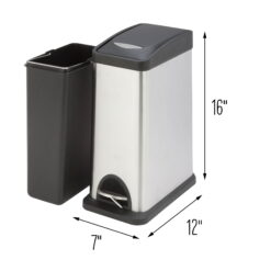 Honey Can Do TRS-06309 8L/2.1Gal Rectangular Stainless Step Can, Stainless. A contemporary addition to any home or office, this 8L trash can boasts sturdy construction for daily use. The steel foot pedal provides hands-free operation to keep germs at bay. Includes a plastic inner bucket for easy garbage disposal and cleaning.