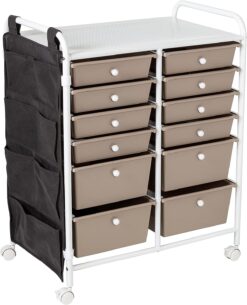 12-Drawer Metal Rolling Storage Cart with Side Pockets