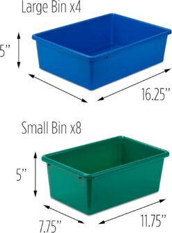 Honey-Can-Do SRT-01602 Kids Storage Organizer, 12-Bins. Removable containers make for quick clean up. Surfaces are durable and stain resistant. Corners are rounded – no sharp edges. Featuring durable strap to secure unit onto wall for safety. Helps develop organization skills. Made of sturdy thick plastic. The perfect organizer for children’s playrooms or bedrooms, these colorful bins make organizing fun and easy, even for small kids. Effortlessly sort matchbox cars, tinker toys, action figures, craft supplies and more into the sturdy plastic bins. The natural wood frame holds 12 containers of varying sizes to keep everything tidy. Each bin measures 5 inches high, providing ample storage space for both small and medium size toys, books, clothing, and more. Bins are removable from the shelves making clean-up time fast and simple. Although perfect for kids toy storage, this handy 12-Bin organizer has many other uses. Just use your imagination. (This item is also available in pastel colors). Includes safety mount hardware to secure unit to wall and help avoid tipping.