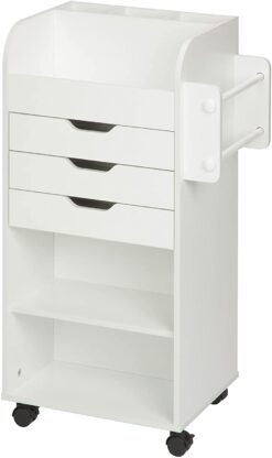 With the Honey-Can-Do Rolling Craft Storage Cart, White, it’s easy to organize arts, crafts, and gift wrapping. No more scrambling for supplies, searching under beds for wrapping paper, hunting in closets for beads, rhinestones, and other embellishments. This cart’s drawers, shelves, slotted compartments, and dual dowel rod dispensers keep everything at the ready. During the holidays, it’s a one-stop gift-wrapping shop. Year-round, it can corral the tools your creativity needs. In a clean matte white finish, it’s unobtrusive. And when you need it, it’s ready to move on four locking caster wheels.