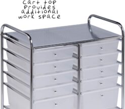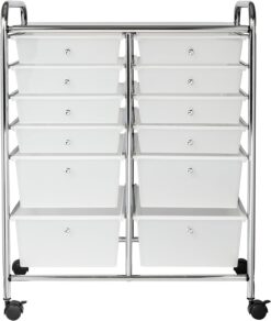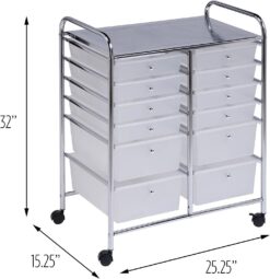 Metal Rolling Storage Cart with 12 Plastic Drawers, Chrome