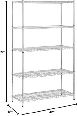 Honey-Can-Do SHF-01441 Adjustable Storage Shelving Unit, 800-Pounds Per Shelf, Chrome, 5-Tier, 42Lx18Wx72H