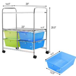 HONEY JOY TOPB003952 4-Drawer Plastic Rolling Storage Cart Metal Rack Organizer Shelf with Wheels Green+Blue