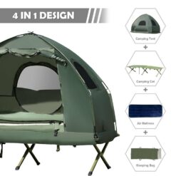 HONEY JOY TOPB005098 1-Person Metal Folding Camping Tent Cot Portable Pop-Up Tent with Sleeping Bag and Air Mattress for Outdoor