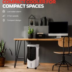- 3-Speed swamp cooler for indoor use in open environments with adequate cross ventilation up to 129 sq ft
