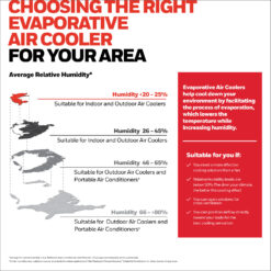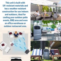- Indoor/outdoor evaporative air cooler or swamp cooler ideal for use in the southwest and Midwest regions of the US – performs best in hot/dry climates where humidity levels are <50%