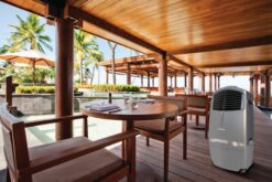 An outdoor evaporative cooler, this weatherproof model is built to cool your medium-sized recreational spaces. Backyard decks, outdoor patios, sunroofs, indoor living spaces —the unit is easily portable for versatile cooling. Equipped with an ice compartment, body-level air throw and a humidity control to regulate moisture output, the CO30XE is customizable for optimal air comfort. New to evaporative air cooling? The sensation is like a lakeside breeze.