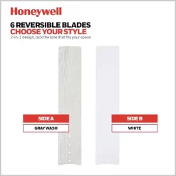 Honeywell Ceiling Fans make your home comfortable in summer and winter as well as help to reduce energy costs. Enjoy the welcome breeze in any room of your home while looking stylish. This multi-position indoor ceiling fan combines stylish details with modern influences for a truly inspiring fixture for your home. This 6 blade ceiling fan features a lantern-style shade with LED lighting. The innovative 6-blade design provides ultra-efficient, adjustable and energy efficient airflow while the dimmable LED lights provide ideal lighting to fit any mood. Control your Honeywell Ceiling Fan with a touch of a button with our easy-to-use ceiling fan remote control with wall mount option batteries included. Enjoy year-round comfort by adjusting the reversible airflow switch that easily allows you to change the direction of the fan to properly distribute air. During hot summer months it will provide a cooling effect or when reversed, spreading warm air in the winter to help reduce energy costs. Specifications: Sizing: 56-in 6-blade indoor fan for rooms over 400 sq. ft. Lighting: 4 inch LED board provides 1400 lumens, 18 watts, 3000k color temperature, dimmable 20% to 100%. About Honeywell Ceiling Fans Honeywell Ceiling Fans features a collection of fans in various sizes and specifications to ensure your choice of indoor or outdoor fan delivers optimum performance for your room’s size. You can trust the quality of Honeywell Ceiling Fans to deliver maximum airflow and a stylish lighting option. Honeywell Ceiling Fans use high-quality materials that are long lasting and durable.