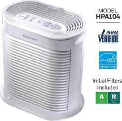 Honeywell HPA104 HEPA Air Purifier for Medium Rooms – Microscopic Airborne Allergen+ Reducer, Cleans Up To 750 Sq Ft in 1 Hour – Wildfire/Smoke, Pollen, Pet Dander, and Dust Air Purifier – White