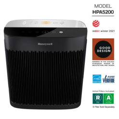 Honeywell InSight HEPA Air Purifier with Air Quality Indicator and Auto Mode, Allergen Reducer for Large Rooms (360 sq. ft), Black, Wildfire/Smoke, Pollen, Pet Dander & Dust Air Purifier, HPA5200