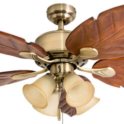 Honeywell Royal Palm 52″ Aged Brass Tropical LED Ceiling Fan with Light