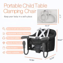 Hook On Chair, Fold-Flat Storage and Tight Fixing Clip on Table High Chair, Removable Seat Cushion, Fast Table Chair with Dining Tray Plus, Black