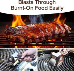 - NO BRISTLES, NO MESS: Ditch dangerous wire brushes. Giddy Up uses a solid stainless steel roller to power through char without shedding bristles that can end up in food
