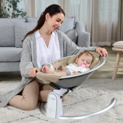 Hot Mom Electric Baby Bouncer, Bluetooth Baby Rocker with Intelligence Timing, Adjustable Seat Baby Bouncer for 0-12 Months, Beige