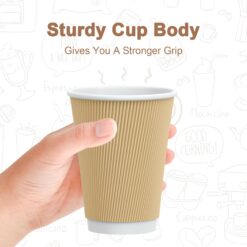 Hot Paper Cups 150 Pack Coffee Cups, Paper Coffee Cup 12 oz Disposable Insulated Corrugated Sleeve Ripple Wall Hot Beverage Cups Suitable for Drink, Party and Any Occasions (Kraft)