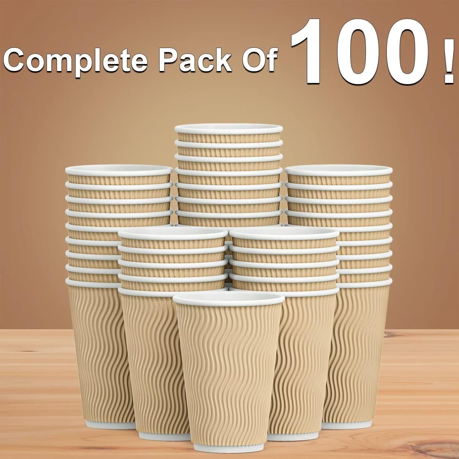 Hot Paper Cups 16 oz Disposable Insulated Corrugated Sleeve Ripple Wall Paper Cup 100 pcs,16oz Cups for Drink,Hot Coffee Cups (Brown)