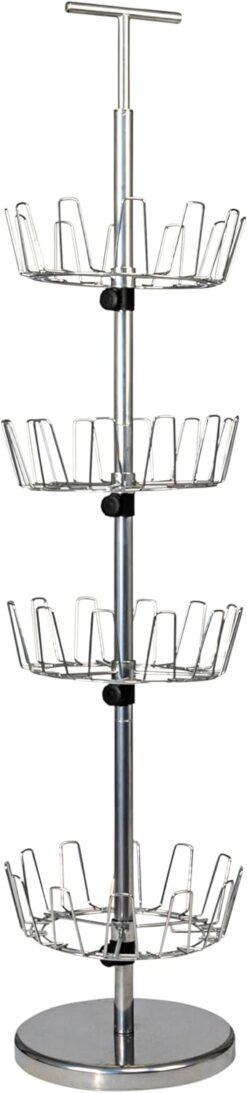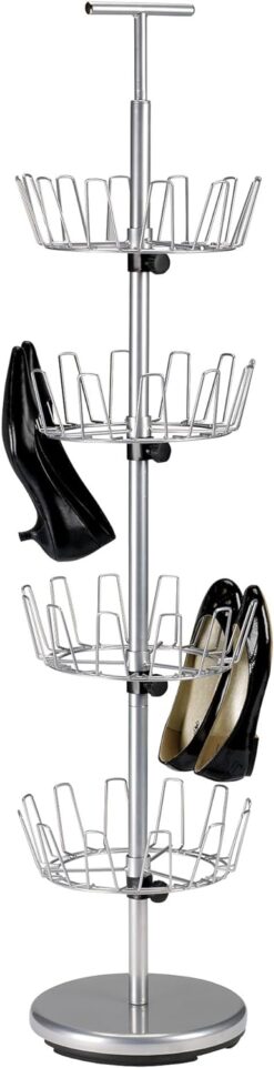 Household Essentials 4-Tier Revolving Shoe Tree, Heavy-Duty Steel with Stabilized Base, Holds 24 Pairs of Shoes, Great for Most Styles, Chromelike Finish