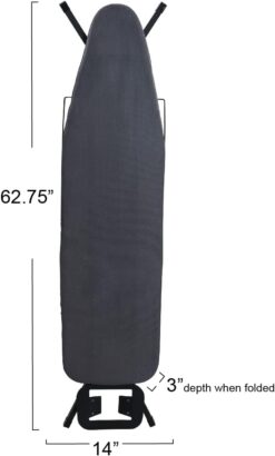 - This deluxe matte black ironing board is a chic method of accomplishing excellent ironing results with its 4 durable legs and various height settings.