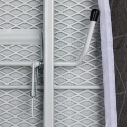 This over the door ironing board is a perfect ironing solution for anyone looking to save time, effort and space in their home while still delivering the ironing results they need. Because this over the door board is more compact than a regular folding ironing board or tabletop board, it’s great for spaces where floor (or other) space is limited. The ironing board comes with hooks to secure the frame on the back of a door with commercial or standard thickness. The board has a steel frame, and the board itself is made of steel mesh. The perforations in the steel allow the board to be sturdy but still lightweight while also allowing steam and heat to pass through and circulate more easily, leading to more even ironing results. At the top of the frame is a u-hook iron holder to store your iron while it’s not in use. The board has a cover with a 100% cotton exterior and 3mm padding with bungee cord binding to keep it secure. Two feet at the board’s base support the board while it’s extended to keep it steady and protect the door from scuffing. The board opens and closes with a lever action, allowing for easy access—no reaching or straining to pull the board down. When you’ve finished, simply release the board with the press of a lever and lift the board back into place. This over the door ironing board makes a great first ironing board for a young person, whether they’re living in a dorm or their first apartment. It’s also a smart and space-saving solution for anyone living in an apartment, condo or home, or for an office, boat or RV. The unit hangs 50.25 inches down from the top of the door and is 17 inches wide and 2 inches deep when closed. Open, the board is 50.25 inches high (measured from the top of the door) and ironing board extends 43.625 inches into the room. The ironing surface is 14 inches wide and 41 inches long.