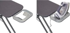 With stunningly chic style and a smart design, this deluxe ironing board stands out from the crowd. Using this ironing board promises crisp results on button-ups, slacks, bedsheets, tablecloths, curtains and more. Unlike SOME other ironing boards, this boasts a high-quality mesh steel top. This durable mesh offers more stability and allows steam and heat to circulate through fabric for better, faster and more even results than you’d get with other steel-top boards. This improved circulation also prevents the build-up of excess moisture or damp spots. This steel mesh top is a must-have feature for anyone who irons frequently, especially with steam or higher temperatures. This ironing board utilizes additional improved features, including durable hex legs with skid-resistant caps and a sleek, elegant matte black finish. The 4 hex legs cover a greater surface area to provide the best form of stability. The gray FiberTech cover attaches to the ironing board with a simple drawstring cord. Underneath the cover is a high-quality, 6mm-thick fiber pad. This thick layer prevents imprints from the steel ironing surface transferring onto your garments and creates a smoother finish. The cover and pad has been stress tested to ensure durability and resistance to high temperatures. This ironing board creates enviable results and is highly convenient. Attached to the end of the board is an iron rest outfitted with heat-resistant silicone pads. This serves as a safe and reliable spot to rest your iron as it warms up and cools down. This iron rest has multiple slots to hang articles of clothing within reach. The board has 4 height settings that can be adjusted with a quick push of a lever. This deluxe ironing board can be folded down for compact storage. It can easily hang behind a door, on the wall or inside a closet. The modern matte finish and functionality of this ironing board make it the prime choice for anyone looking to complete their daily ironing in style.