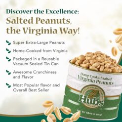 - UNMATCH FLAVOR AND CRUNCHINESS – (2 pack of 40 oz Can) Enjoy the rich, savory taste of Virginia’s top 1% peanut crop, handpicked for their exceptional quality. With an irresistibly satisfying crunch, these super extra-large Virginia peanuts are a testament to artisanal excellence, delivering a gourmet snacking experience that tantalizes your taste buds.